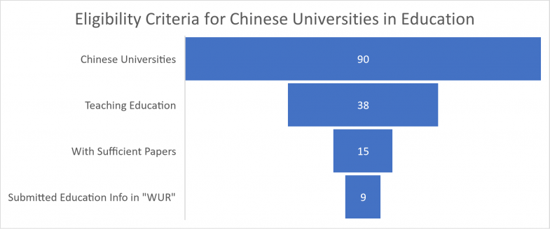 Of the 90 Chinese universities in the China Subject Ratings, 38 provided evidence that they teach courses in the Education subject as defined by the Ministry of Education. Of these 38 universities, nine were eligible for a grade based on them having entered data in the World University Rankings for the Education subject, and having a sufficient number of research papers in the years 2015 to 2020. Globally, 529 universities were eligible for a grade.
