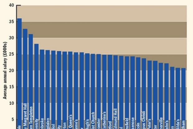 The average salaries earned by graduates of each Oxford college six months after leaving caused a stir when first revealed by student newspaper Cherwell at the end of last year. The data show a spread of more than £15,000 from the highest (Keble College at £35,900) to the lowest (Wadham College at £20,700).