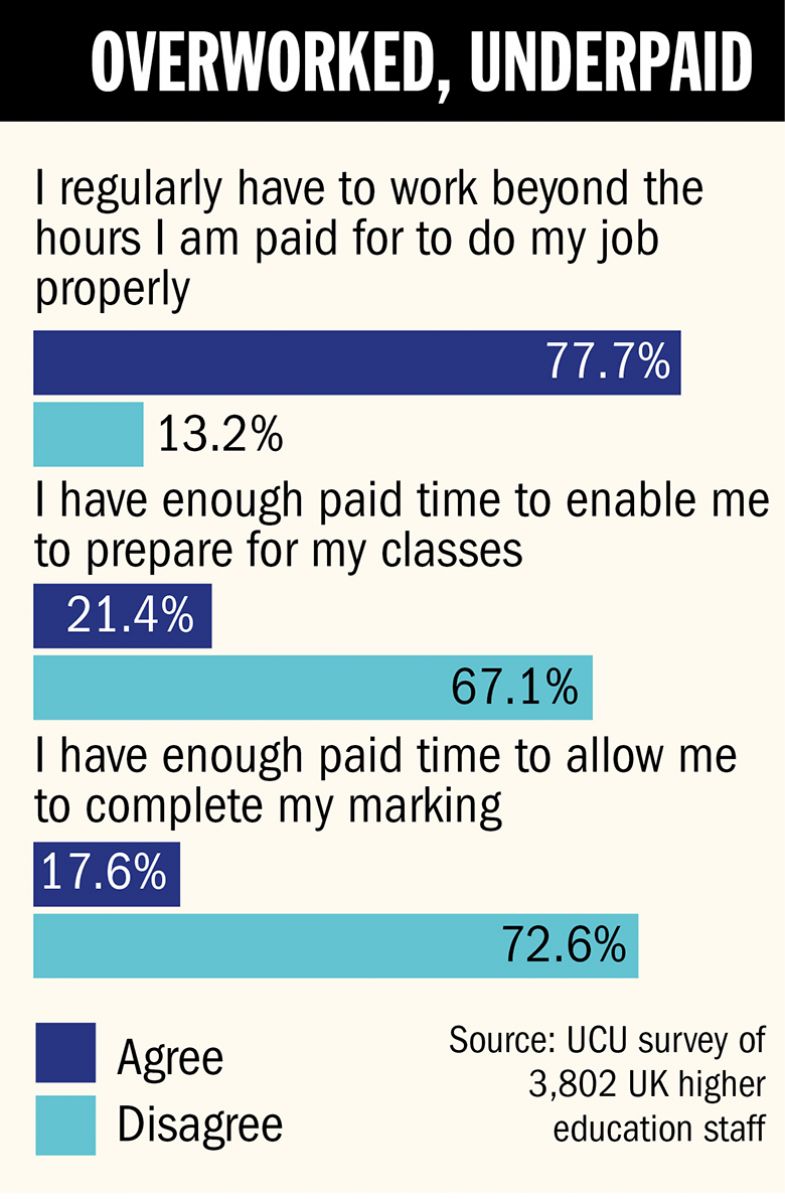 Some academics complained that they were paid only for the actual delivery of teaching hours. Respondents said that they did not have enough paid time to prepare for their classes (67.1 per cent agreed), keep in touch with the latest scholarship (75.3 per cent) or give students the attention and feedback they needed (71 per cent).