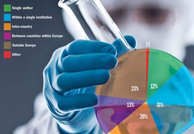 Research collaboration patterns in Europe More than half (57 per cent) of all European research papers are written by authors with collaborators outside their institution, a study has found By Elizabeth Gibney 24 October