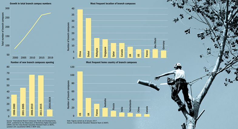 The slowdown in growth is not necessarily a surprise given the financial and reputational risks associated with launching such sites and the serious issues that have plagued some branch campuses. The University of Central Lancashire, for instance, was rebuked by the then UN secretary general, Ban Ki-moon, in 2013 after it established an “unauthorised” branch campus in the buffer zone between Greek and Turkish Cyprus. It was also criticised by Amnesty International for plans to expand into Sri Lanka amid allegations that the country’s government committed war crimes during the brutal conclusion of its war against the Tamil Tigers in 2009 (Uclan eventually partnered with a local institution to deliver two courses from 2017). It also emerged in 2013 that the institution would lose up to £3.2 million in the collapse of its planned Thailand campus, a joint venture with a local businessman.