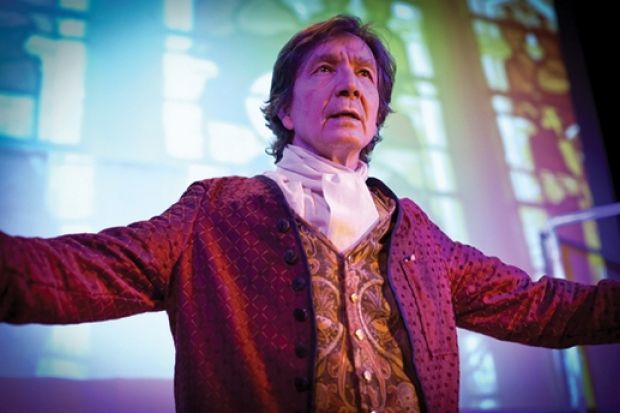 The young boy is by turns curious, funny and brilliant, while the university scholar is a severe and radically unorthodox anti-Trinitarian Protestant. The retrospective views of the ageing autocrat appear throughout the performance, although he comes into his own towards the end of the play as the great scientific dictator.