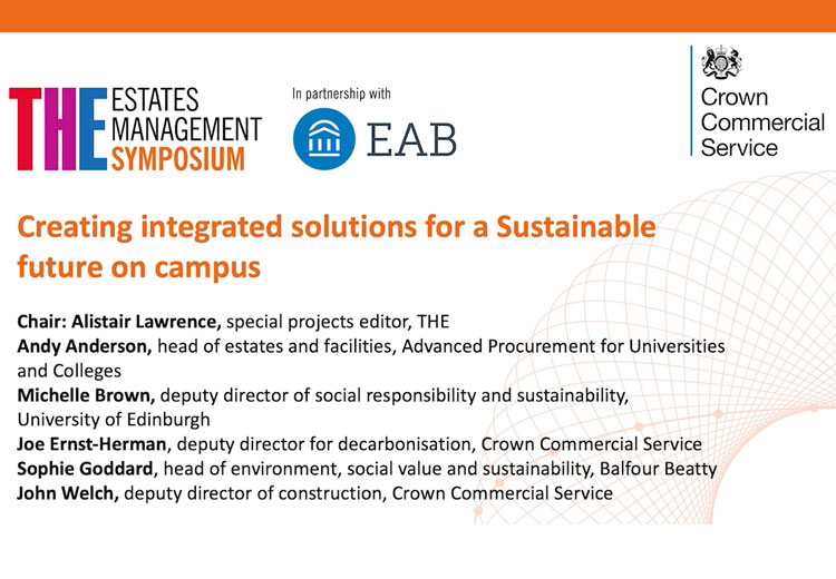 Higher education’s journey towards becoming carbon neutral faced some stumbling blocks this past year. Students and staff have been using buildings differently and travelling less, but funding for and collaboration around sustainability has slowed, according to panellists at the “Creating integrated solutions for a sustainable future on campus” session at THE’s Estates Management Symposium, in partnership with Crown Commercial Service.
