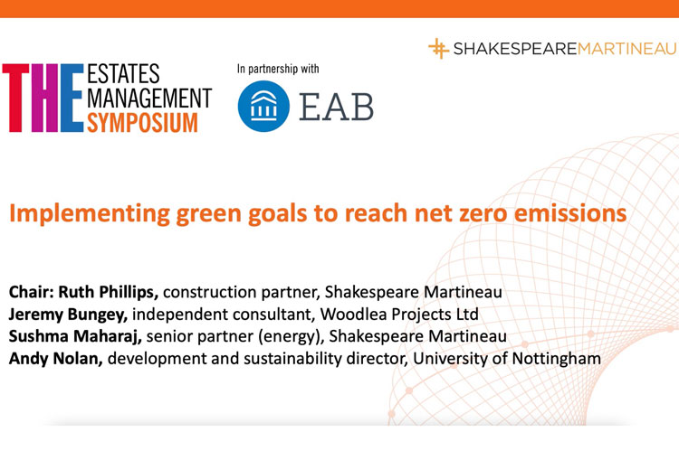 At a panel for the THE Estates Management Symposium 2021, in partnership with law firm Shakespeare Martineau, industry experts discussed how higher education institutions were implementing green goals to reach net-zero emissions.