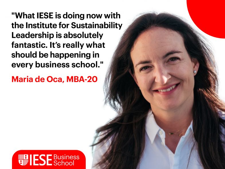 “What IESE is doing now with the Institute for Sustainability Leadership is absolutely fantastic. It’s really what should be happening in every business school,” De Oca says.