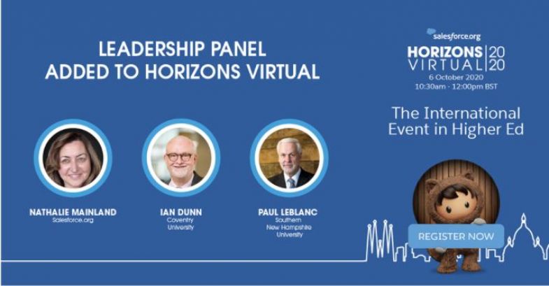 Salesforce.org’s Horizons Virtual event registration is now open! This annual international higher education event has gone virtual this year, which means that on 6 October at 10:30 a.m. BST, you can attend with a beverage in-hand while connecting and learning with a global audience.