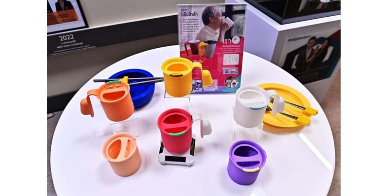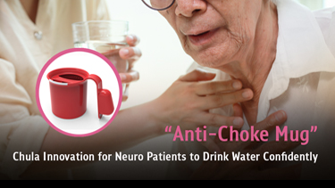 Chula Medicine has designed an anti-choke mug with calculated angle, amount, and time of water flow from the mug to the patient’s lips hoping to reduce choking that may lead to lung infection, bring peace of mind to caregivers, and make it safer for patients who will have a better quality of life.