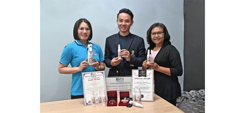 “This product uses nano extracts from mangosteen peel to help eliminate odors and nourish the skin. It is also effective in inhibiting fungi and bacteria while healing skin inflammation as well.  The spray can be absorbed well into the skin, is free of chemicals, has a long-lasting fragrance, and is safe for people and pets,” Ms. Sujin revealed the innovations’ highlight.