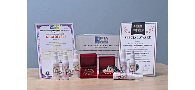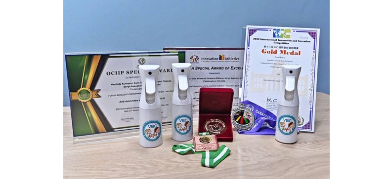 This question sparked an interest in the researchers from the Biochemistry Unit, CUVET to research and develop “Dust Mites Repellent Herbal Spray” and “Pet Fragrance Spray from Mangosteen Peel Extract” by using nanotechnology to enhance product performance. Guaranteed as the best innovation with the gold medal and two special awards from the 13th International Innovation Competition 2022 in Taipei, Taiwan.