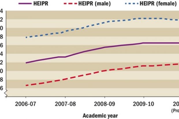The HEIPR, which refers to English-domiciled 17- to 30-year-olds studying at UK institutions, was the measure used by the Labour government for its 50 per cent participation target.