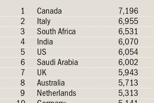 Canada topped the pay league, with academics receiving an average of $7,196 (£4,537) a month before tax, when figures were adjusted for purchasing-power parity.