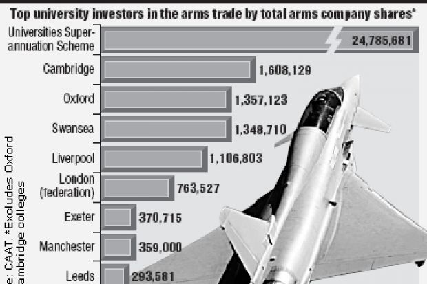 'Name and shame' exercise details 33 million shares in weapons makers. Phil Baty reports