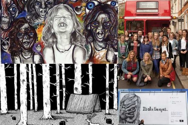 Twenty budding creatives have been crowned the winners of a university-developed art competition that “supersizes” the best entries on to billboards in London and other major sites across the UK. Who Are You?, developed by the Arts University of Bournemouth, gives 14- to 19-year-olds the opportunity to express themselves by asking them to create a poster expressing their identity. On hand to judge the entries were a host of big names in the creative and advertising industries, including photographer Rankin and artist Stuart Semple. The shortlist of potential winners was put to a public vote on Facebook, with around 11,500 people responding. One of the winners, 16-year-old Sophie Lloyd, said she was “ecstatic” at seeing her work on such a large canvas. “I’m proud of my achievement and it has given me even more motivation to further my activities in…creative subjects,” she said.