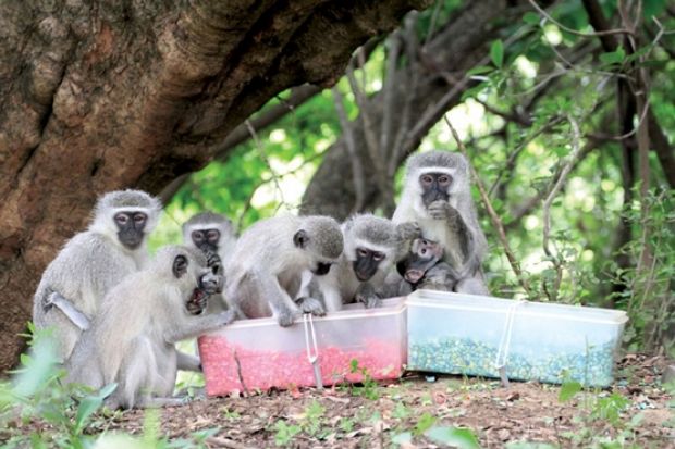 Researchers have observed a rare example of “cultural transmission” among wild monkeys. Working with two groups of vervets in South Africa, scientists from the University of St Andrews and the University of Neuchatel in Switzerland gave one group pleasant-tasting blue-dyed corn and ill-tasting pink-dyed corn, or vice versa. Infants were then offered both colours - neither tasting badly - and soon learned from their mothers which was the “right” kind for their group. However, the crucial discovery came when males migrating to new groups started eating the colour of corn that was usual there. The findings, published in Science, indicate that “a willingness to conform to what all those around you are doing when you visit a different culture is a disposition shared with other primates”, said Andrew Whiten, Wardlaw professor of psychology and neuroscience at St Andrews.