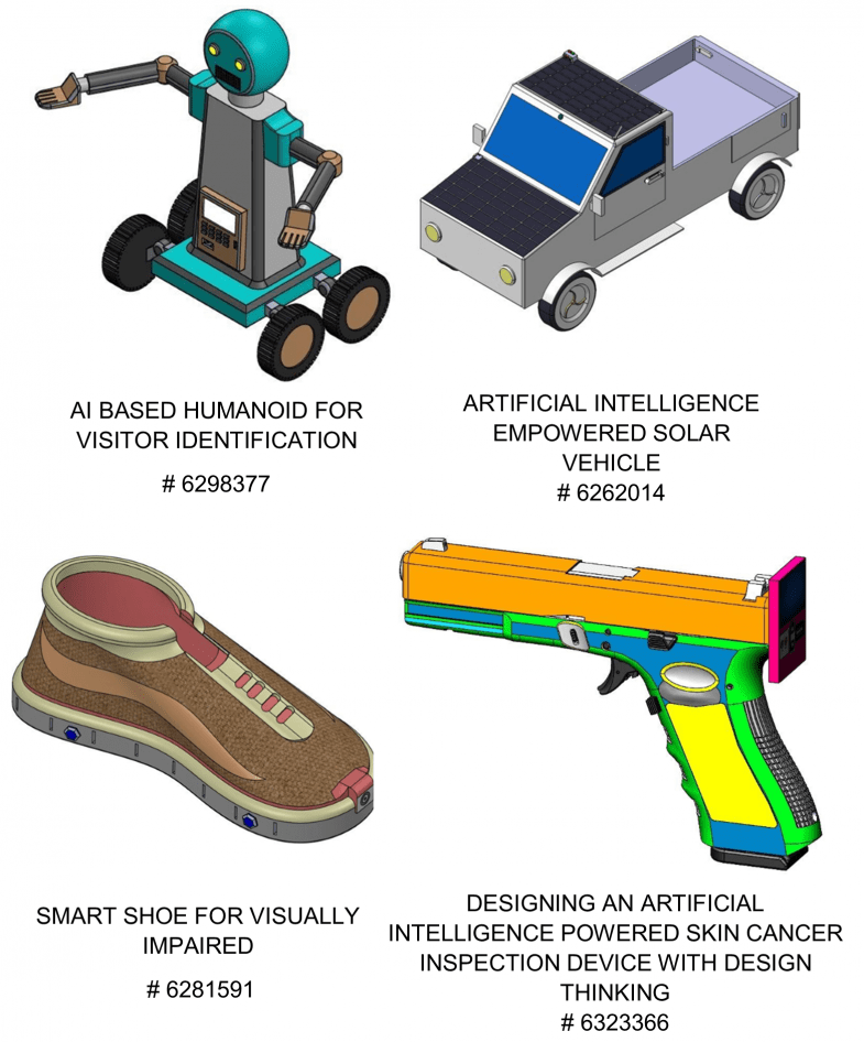 Other designs copied existing products with an “artificial intelligence powered skin cancer inspection device with design thinking” which in reality constituted little more than a picture of a colourful Glock pistol with a screen attached. Similarly, a “smart shoe for the visually impaired” resembled a multi-coloured shoe.