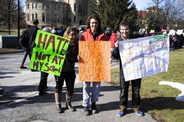 W. Scott Lewis, managing partner at the National Center for Higher Education Risk Management, said that “without a doubt” officials were thinking about the events of February when they decided to cancel classes. (Among the incidents, chronicled by The Oberlin Review hate speech, at least one with a swastika, found in faculty mailboxes; physical assault and robbery of a student in which the assailant used a derogatory ethnic term; vandalism in campus buildings including swastikas and scrawling “Nigger” on Black History Month posters; and signs reading “whites only” above a water fountain, “Nigger oven” inside an elevator and “no Niggers” on a bathroom door.)