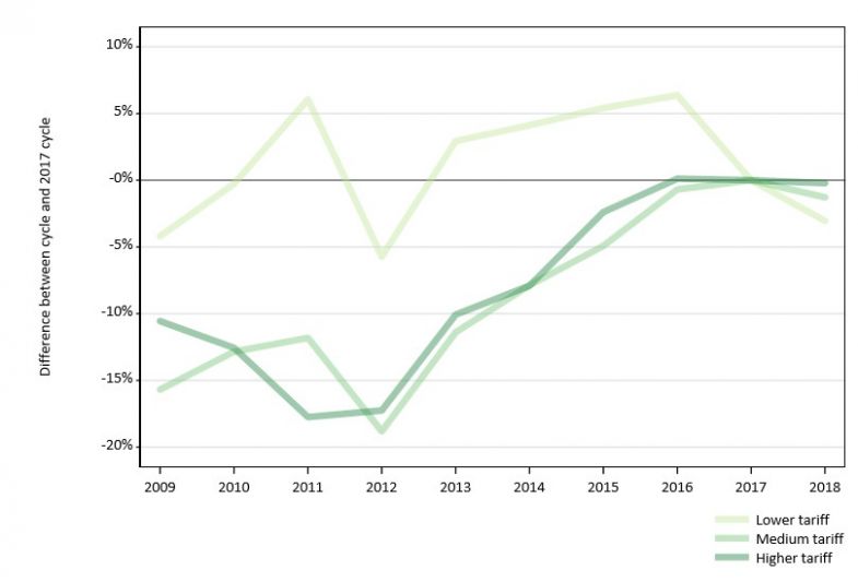 Lower-tariff institutions continue to lose out as 18-year-old population declines