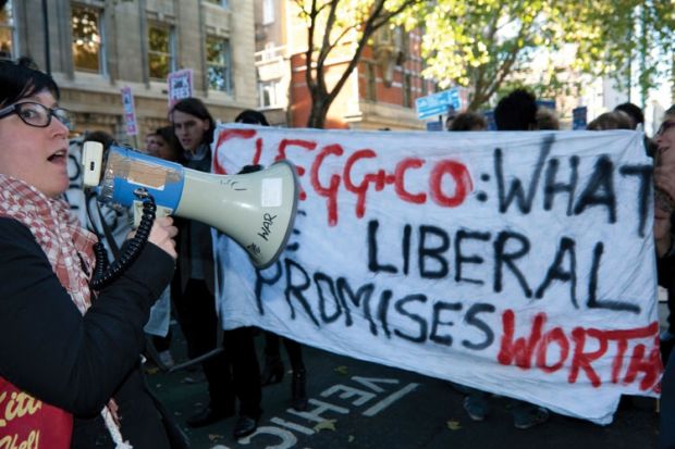 Causing protest: many Lib Dem MPs broke pledge to oppose fee rises in 2010