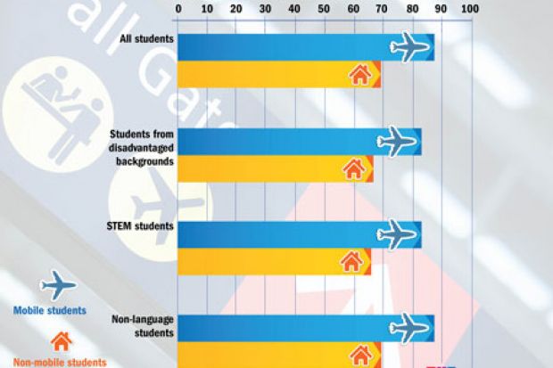 Students who spend part of their degree overseas achieve higher final grades than those who choose to stay put, according to a report