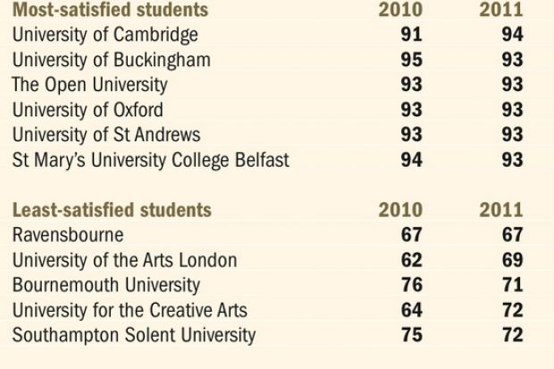 Analysis by Times Higher Education showed a disparity between satisfaction scores and 2012 tuition fee levels at many universities.
