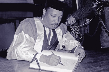 Despite a frenetic schedule as he campaigned for Carl Stokes in his successful bid to become the first black mayor of Cleveland, Ohio, Dr King took time out to visit the UK for 24 hours to receive in person his honorary doctorate of civil law from the university’s chancellor, the Duke of Northumberland.