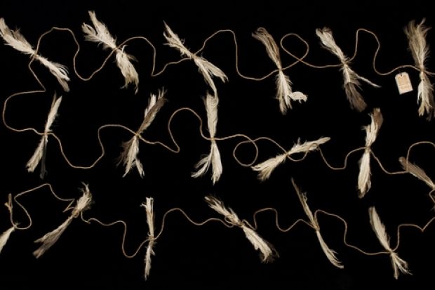 This 1.5m long feathered rope was found in a Somerset attic in the late 1870s, alongside six brooms and an old chair.