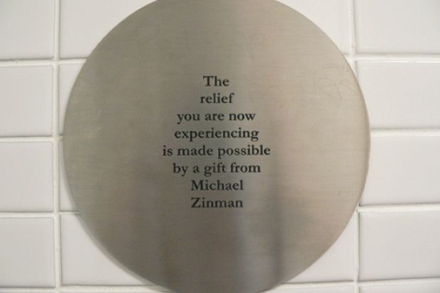 Businessman and philanthropist Michael Zinman, who claims to lack a "stop gene" to deter him from putting even his most whimsical ideas into practice, was long keen to sponsor a urinal.