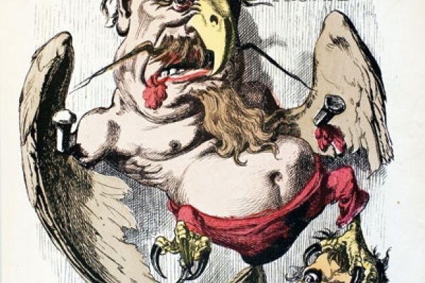Most vivid, perhaps, are the caricatures and cartoons in hand-coloured lithographs (above), which often rely on obscene imagery to convey anti-monarchist, anti-clerical messages.