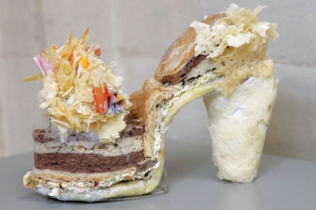 The unusual footwear was commissioned by Somerset cheese manufacturer Pilgrims Choice from 50 first-year students on Bath Spa University's course on textile design for fashion and interiors as part of a national "cheese couture" competition.
