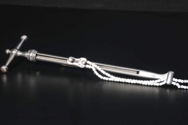 The linear écraseur chain - developed in Paris in 1850 for amputating limbs and tumours, and for castration - works by the gradual tightening of the chain loop, crushing tissue without causing bleeding.