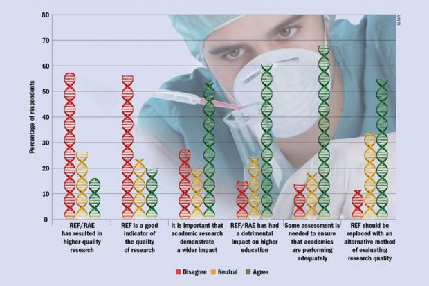 More than 60 per cent of about 6,500 respondents to the survey of UCU members feel that the impact of the REF and its predecessor, the research assessment exercise, has been detrimental. More than half say they would like it to be replaced with an alternative evaluation method.