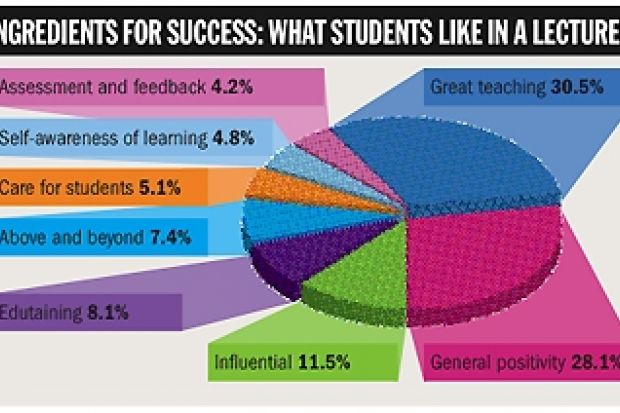 A ranking based on the number of times the most valued traits were mentioned shows that, unsurprisingly, "great teaching" is the most sought-after quality in a lecturer.