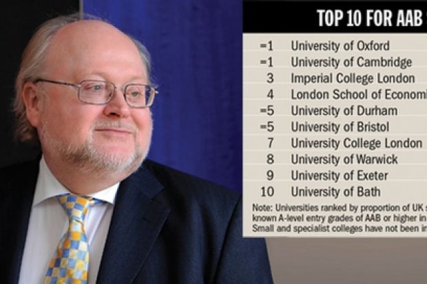Exeter, Durham and the University of Bath were the only non-Russell Group universities in the top 10 institutions with the highest proportion of AAB students, calculated on the basis of 2009-10 data published by the Higher Education Funding Council for England last year (see table above).