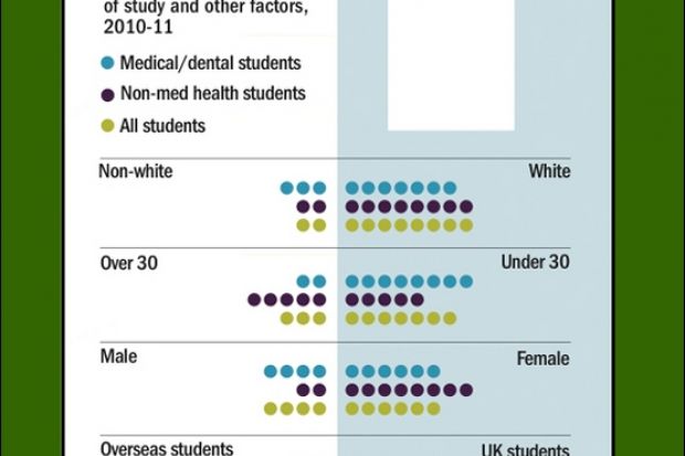 Those taking non-medical health subjects are more likely than the average student to be over 30, from the UK and studying in their home region, it says.