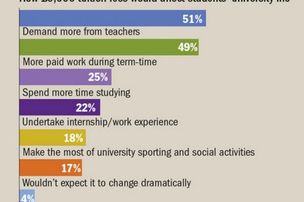 More than half of respondents (51 per cent) said they would expect more from their lecturers if they were paying £9,000 a year, while 25 per cent said higher fees would motivate them to study more.