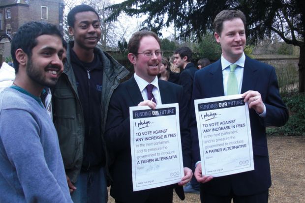 The photograph is infamous now. A youthful and carefree-looking Nick Clegg is holding up a pre-election National Union of Students pledge, bearing his signature, to “vote against any increase in fees in the next Parliament”.