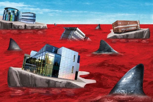 But we also found that many members of mission groups were less clearly aligned and had less distinctive missions. Some 70 institutions found themselves in a crowded market space - a "red ocean" of fierce competition, where success was based primarily on climbing the league tables. These institutions were putting themselves at risk by trying to cover too many bases. With its mission statement of "fair to middling at everything", it is clear where THE's own Poppleton University would stand: its vice-chancellor should be warned that it is exactly in the centre of this perilous red ocean and that its strategic position is thus one of shark bait. While this positioning for the top half of this grouping based on competing on various indicators within league tables is fine and there will be winners, for those like Poppleton in the bottom half, without a distinctive mission and strategy, the risks are clear - they will lose by performing poorly in comparison with the others.