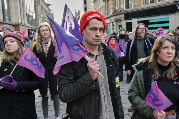 UCU members (seen here in Glasgow) have been on strike several times over the past academic year