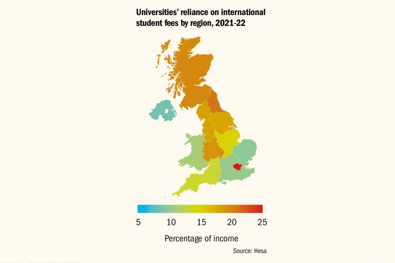 But non-EU fees are also important for institutions outside the elite. Among post-92 universities, non-EU fees accounted for about 14 per cent of income in 2020-21, up slightly from the year before.