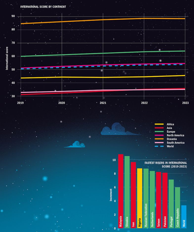 At the country level, Malaysia has improved more than any other, with an increase of 11 points over the past five years. Slovakia increased from 33 to 43 and Iran from 17 to 26.